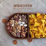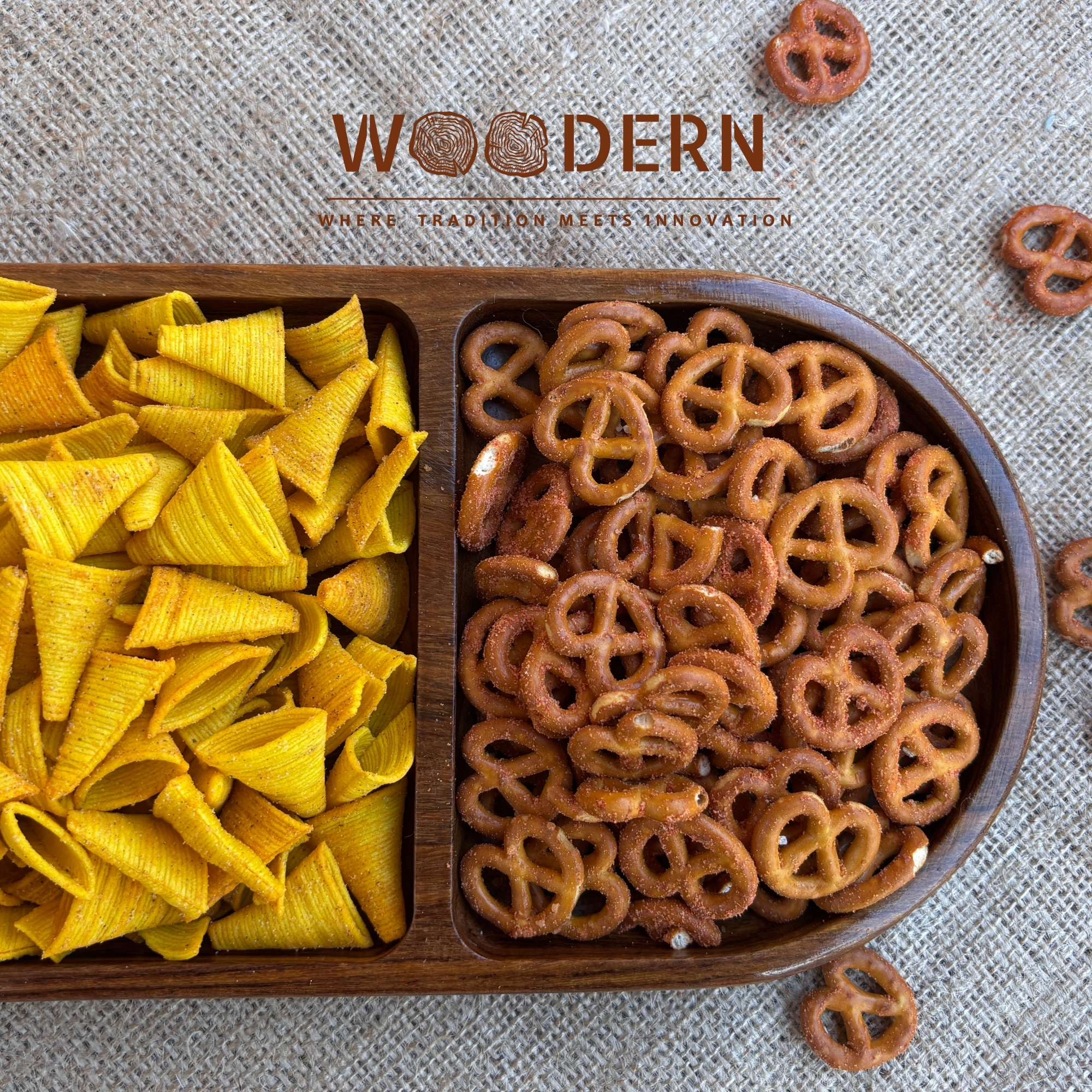 Handcrafted from 100% natural Sheesham wood, this elegant rounded rectangular tray features three spacious sections, perfect for serving breakfast, snacks, or a mix of dips, fruits, and treats ? all in one stylish setup.