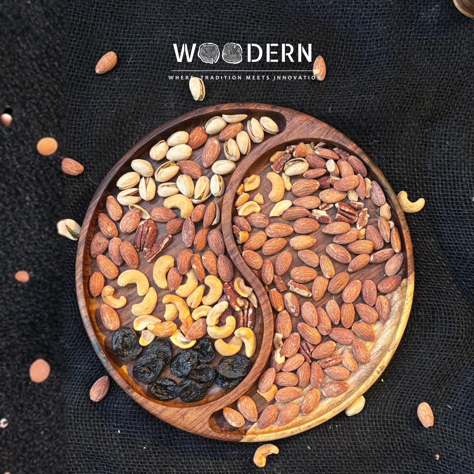 Find your perfect balance with the Woodern Yin-Yang Nuts Tray.